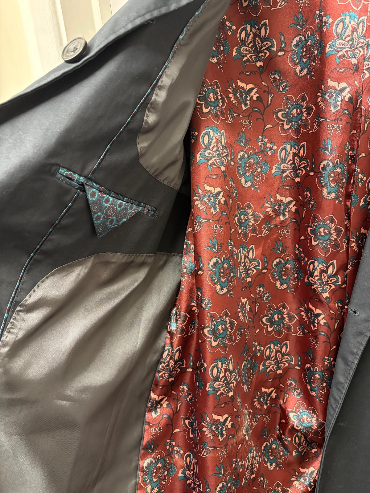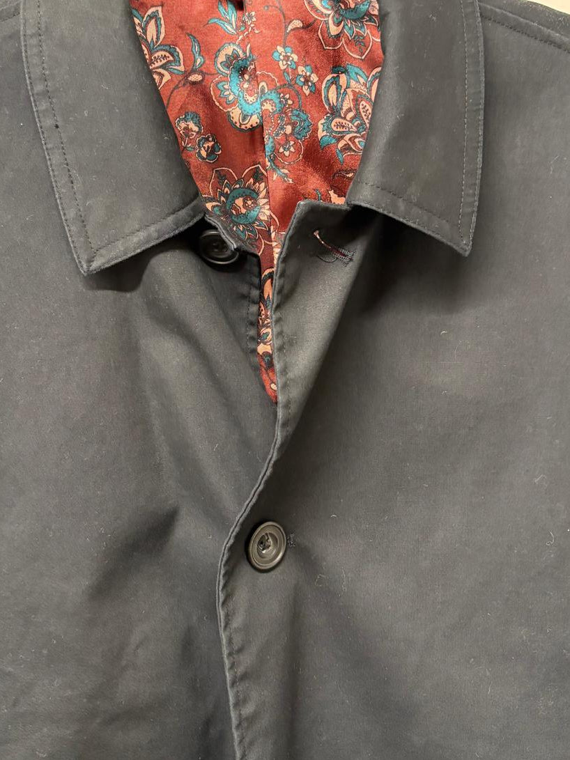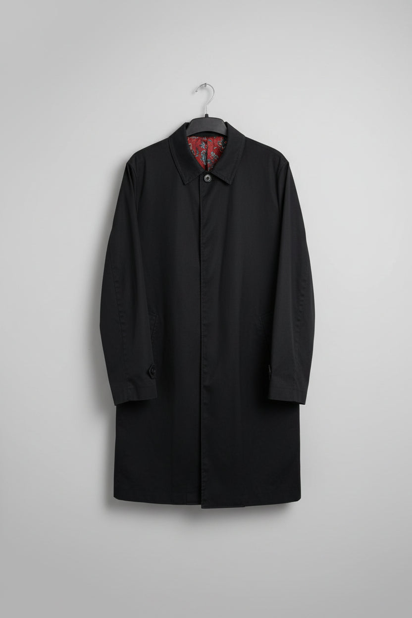 New & Lingwood Black Long Mac Size Large Cotton Blend Buttoned Midi-Length - GOOD USED CONDITION